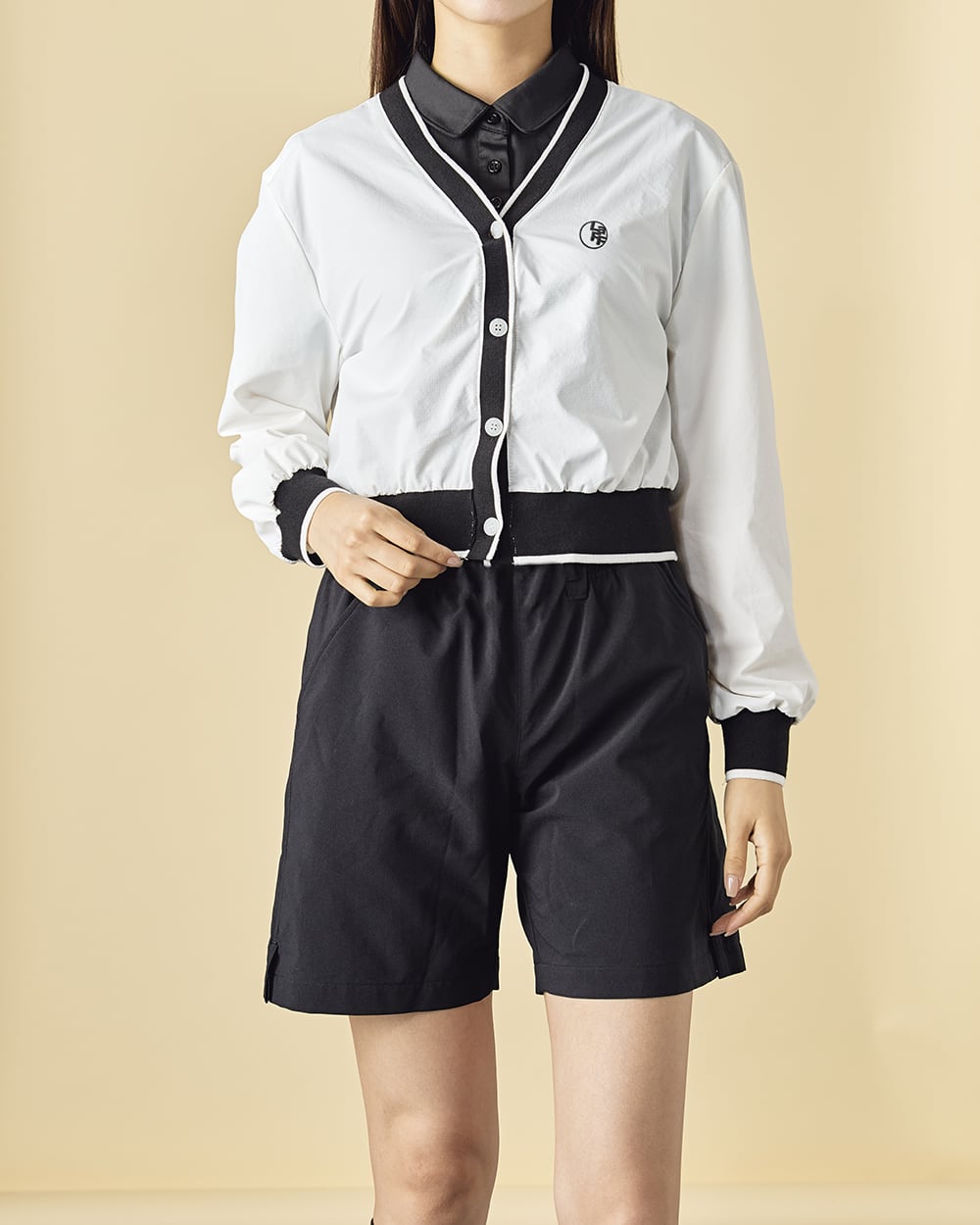 大人女子のゴルフスタイルで最も重要なのは、全体のバランス。このウェアは、あえて着丈を短めに設定したクロップド・シルエットを採用しています。 ハイウエストのスカートやパンツと合わせることで、腰の位置を高く見せ、驚くほどの脚長効果を演出。スイングした際のバックスタイルも、もたつかずスッキリと洗練された印象を与えます。